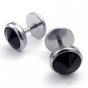 Фейк серьга черный кристалл в вальцовке ( плаг, тоннель обманка) толщина пина 1.2 мм длина 7 мм