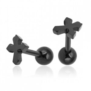 Фейк серьга черная Крест